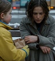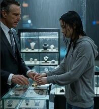 The man is still on his knees, holding her hand like it’s the only real thing left in the world. The camera slowly circles them. Rain begins to fall lightly …