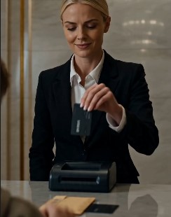 The banker stepped back like the counter had burned her.