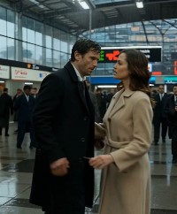 Final shot: the crowd is recording, the man collapses slightly to one knee, and the screen glitches into chaos of flashing phones and stunned faces.