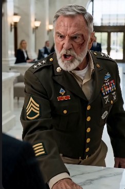 The veteran leaned on his cane, eyes cold but steady.