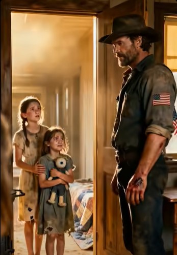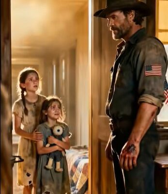 For three weeks, life began to take shape in fragile, ordinary ways. Ruth rose before dawn to knead bread while Daisy perched on a stool, narrating every thought that crossed her mind. Caleb repaired fence posts with Lila trailing behind him, learning the language of tools and timber, discovering that strength did not have to shout. The black dog—Bandit—adopted the girls as if they had always belonged there, sleeping outside their bedroom door each night. Sometimes, in the quiet after supper, Caleb would stand in Anna’s doorway, his burned hand resting on the frame, and Ruth would stand behind him without speaking, her palm resting lightly against his back. Grief did not disappear. It rearranged itself. It made room. Lila still kept her mother’s leather notebook beneath her pillow. She read it at night, tracing her mama’s looping handwriting as if it were a map that might still guide her. In those pages were remedies, recipes, and small notes about hope scribbled between measurements of flour and salt. One line was underlined three times: “If your uncle Everett shows up, run.” Lila had not thought of him in months. Not until the horse appeared at the gate.
